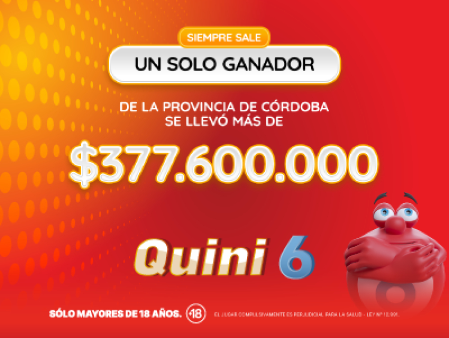 Lotería de Santa Fe informa que en el sorteo de Quini 6, 1 solo apostador con seis aciertos, de la localidad de Río Cuarto, provincia de Córdoba, se convirtió en el acreedor del pozo total de la modalidad “Siempre Sale” por más de $377.600.000 .